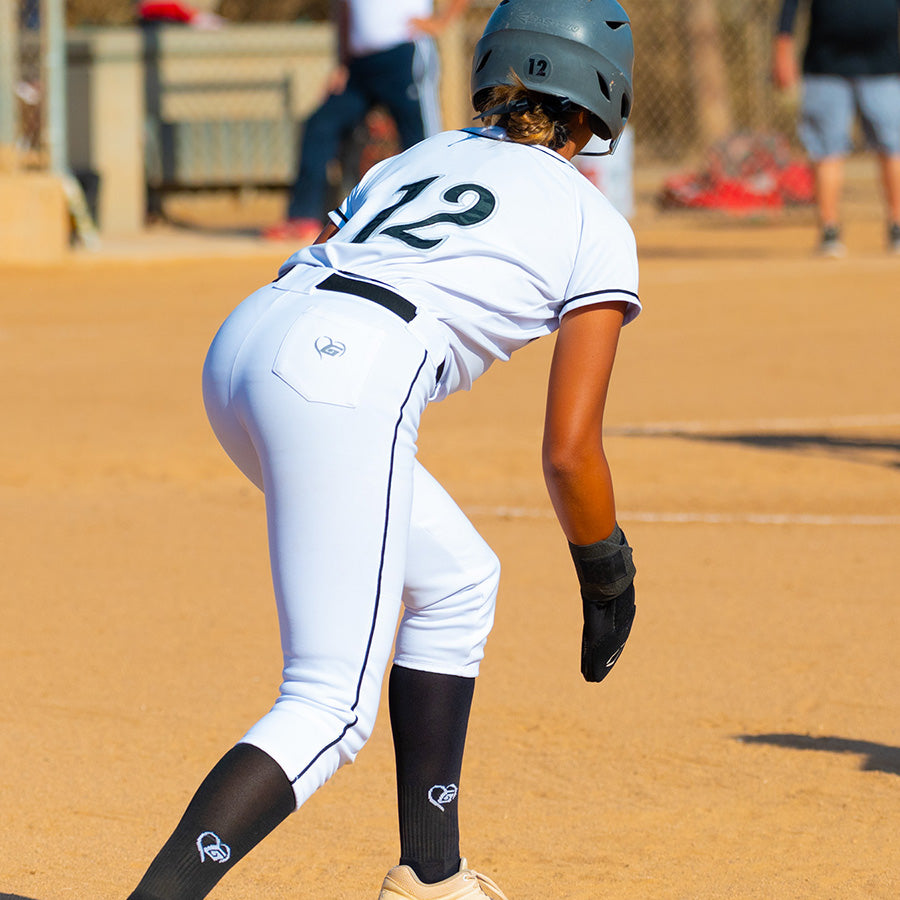 A Softball Pant as tough and beautiful as she is. Our legendary fitting Softball Pant has Belt Loops, and feature the same non-zippered, sleek front design. Available in 17 colors with custom braid options. Made in USA.